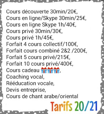 Tarif cours de chant